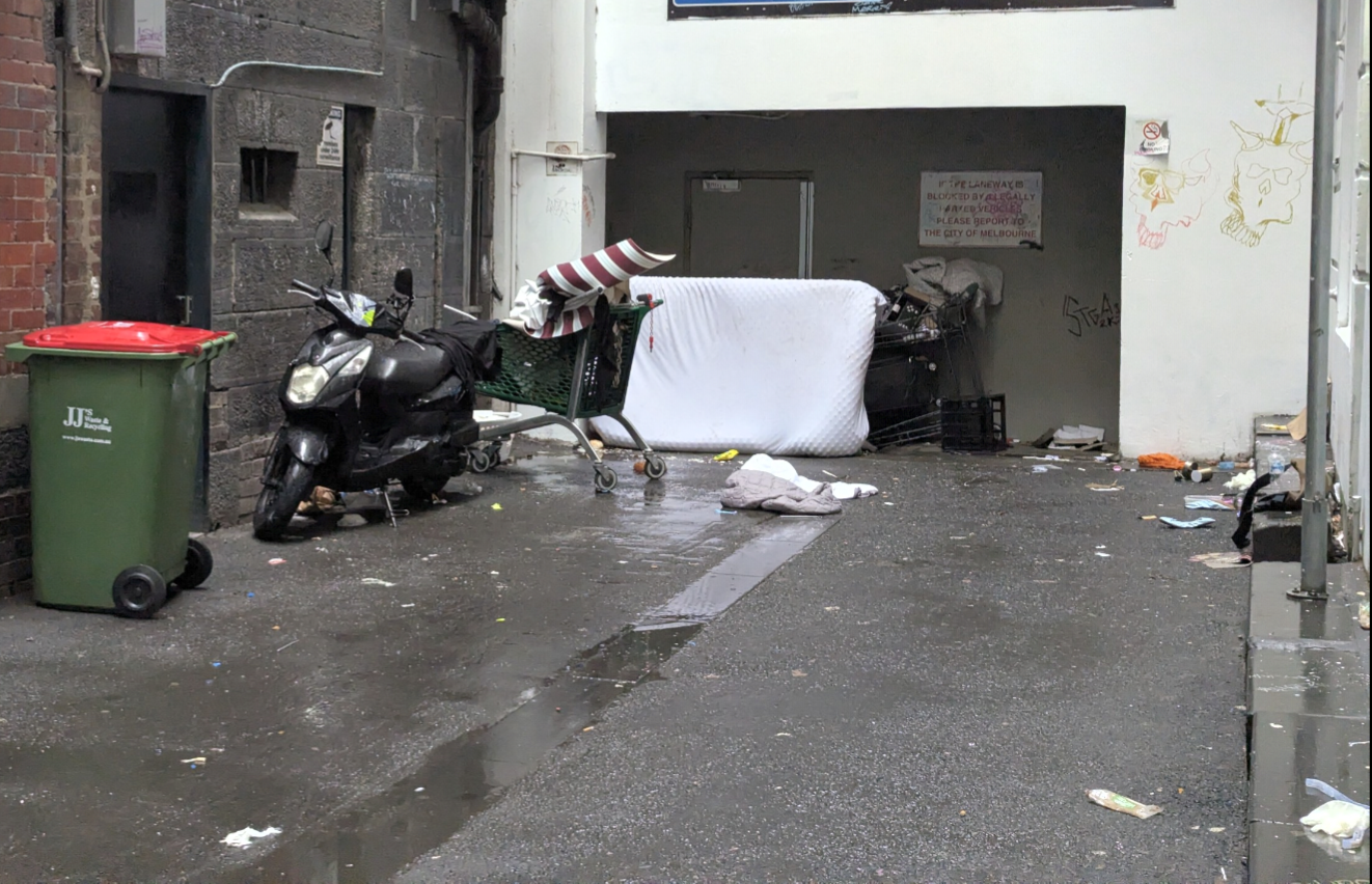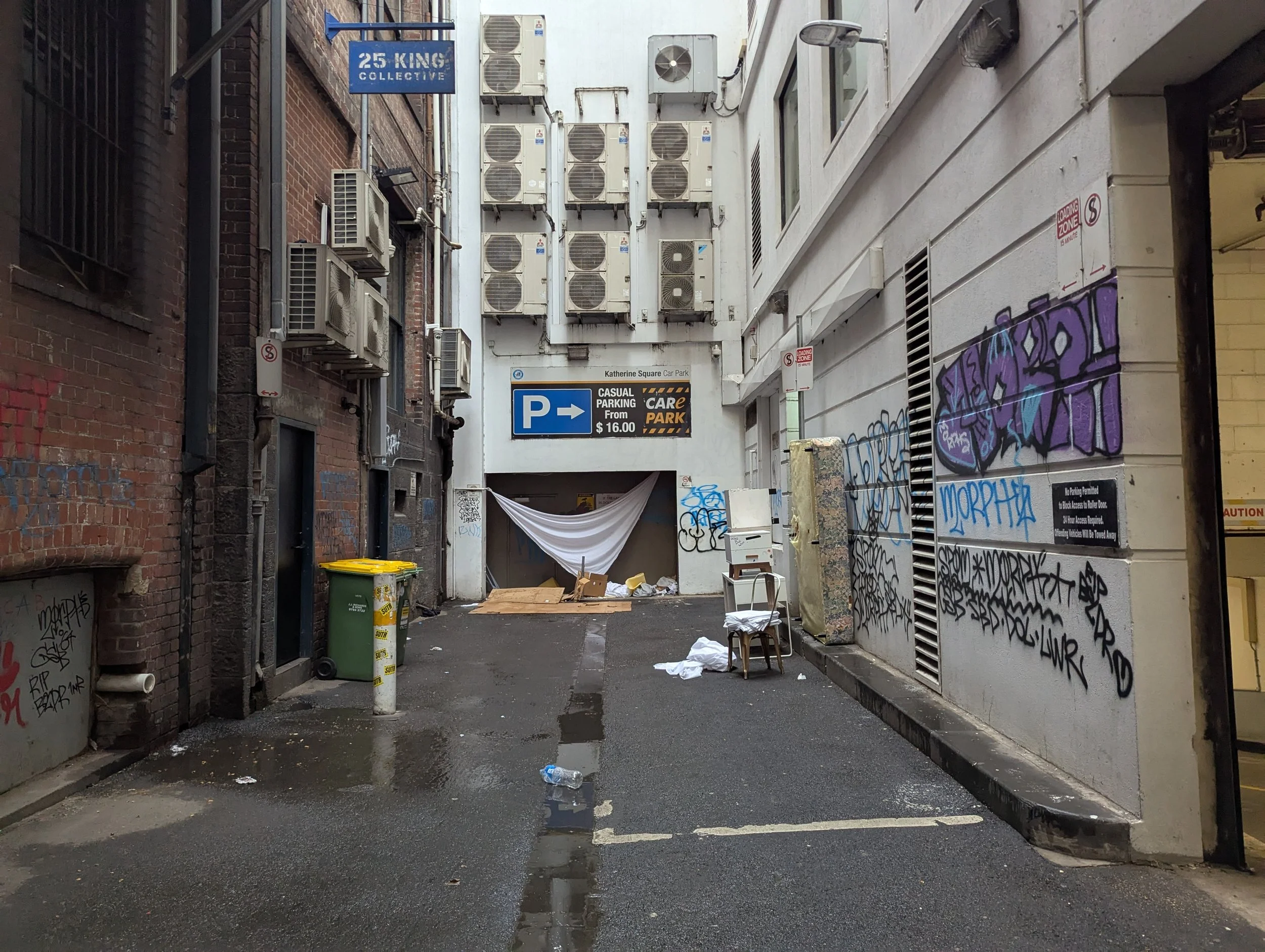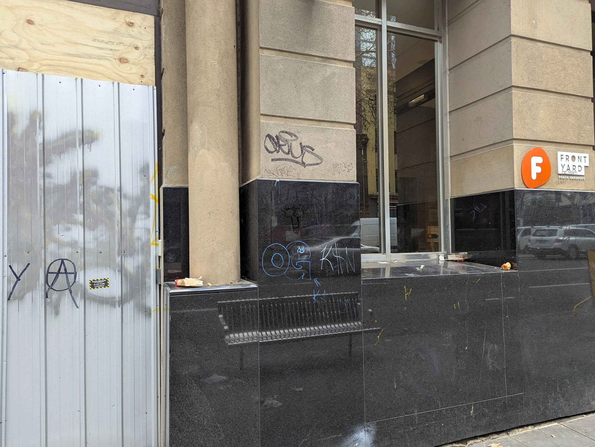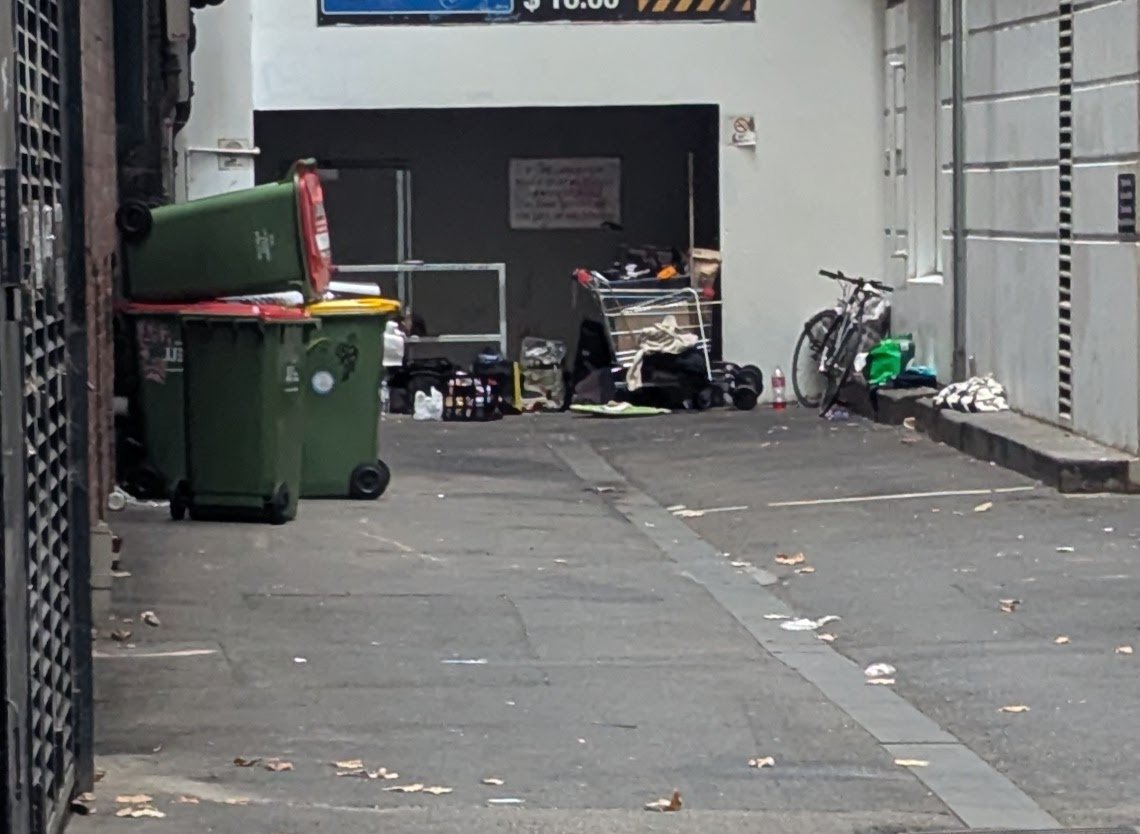 This website is an independent photographic documentation of the public environment in and around King Street (South end), Melbourne CBD. It is not affiliated with, endorsed by, or associated with Melbourne City Mission (MCM), Frontyard Youth Services, or any other organisations. Any incidental appearance of their premises, signage, staff, or clients occurs solely in the context of documenting the public streetscape and does not constitute commentary, representation, or implication regarding those organisations or the individuals depicted.