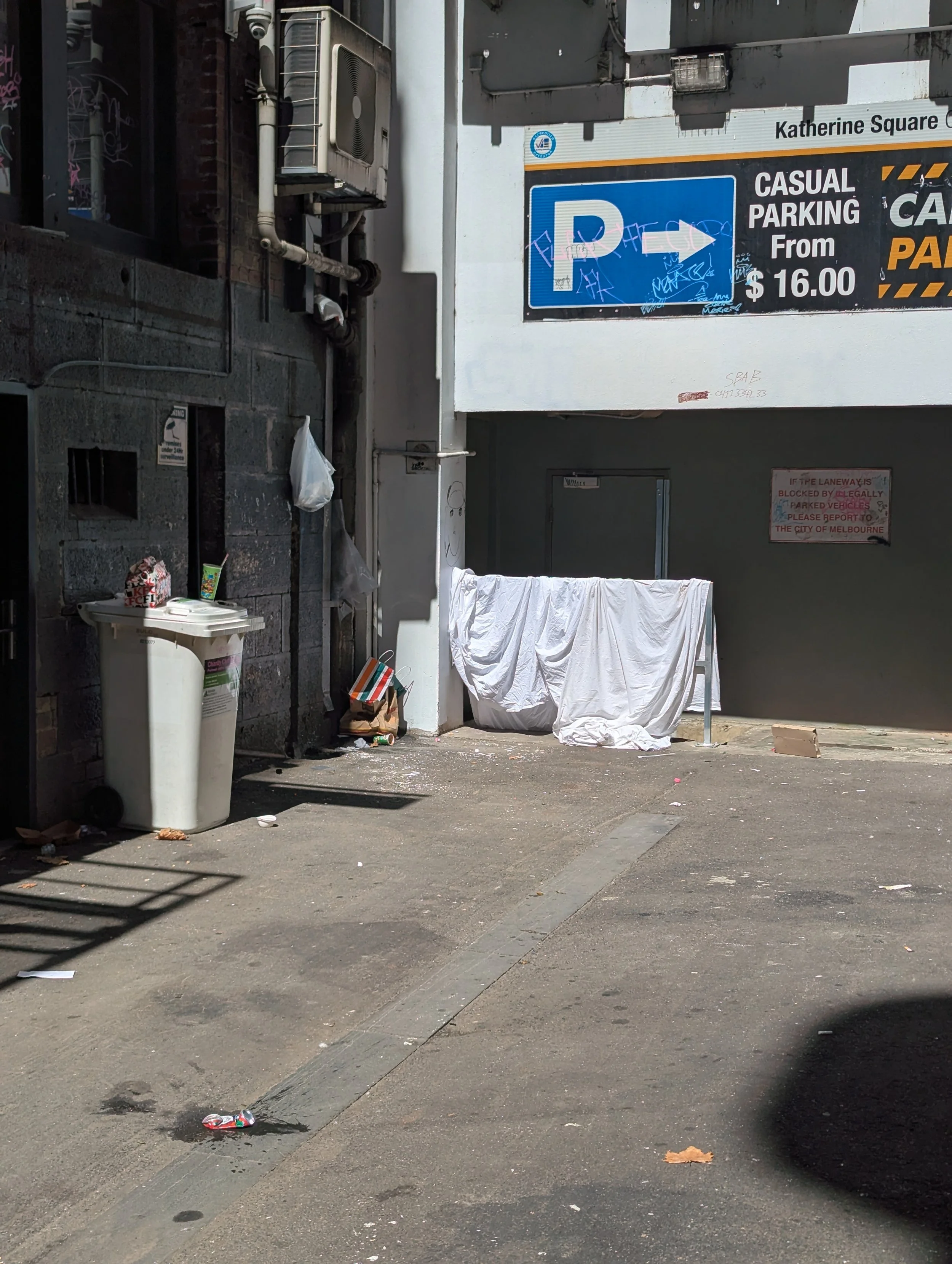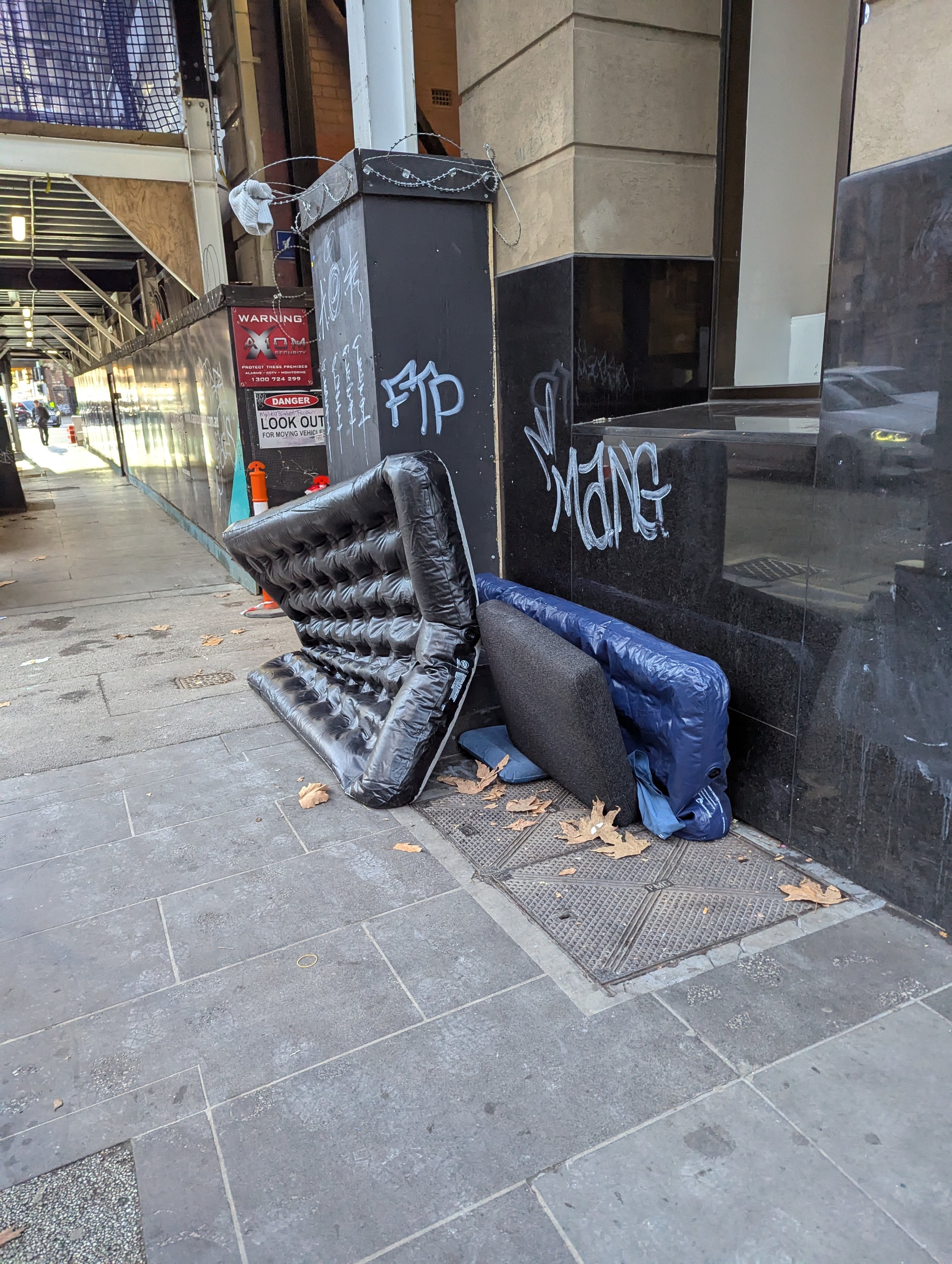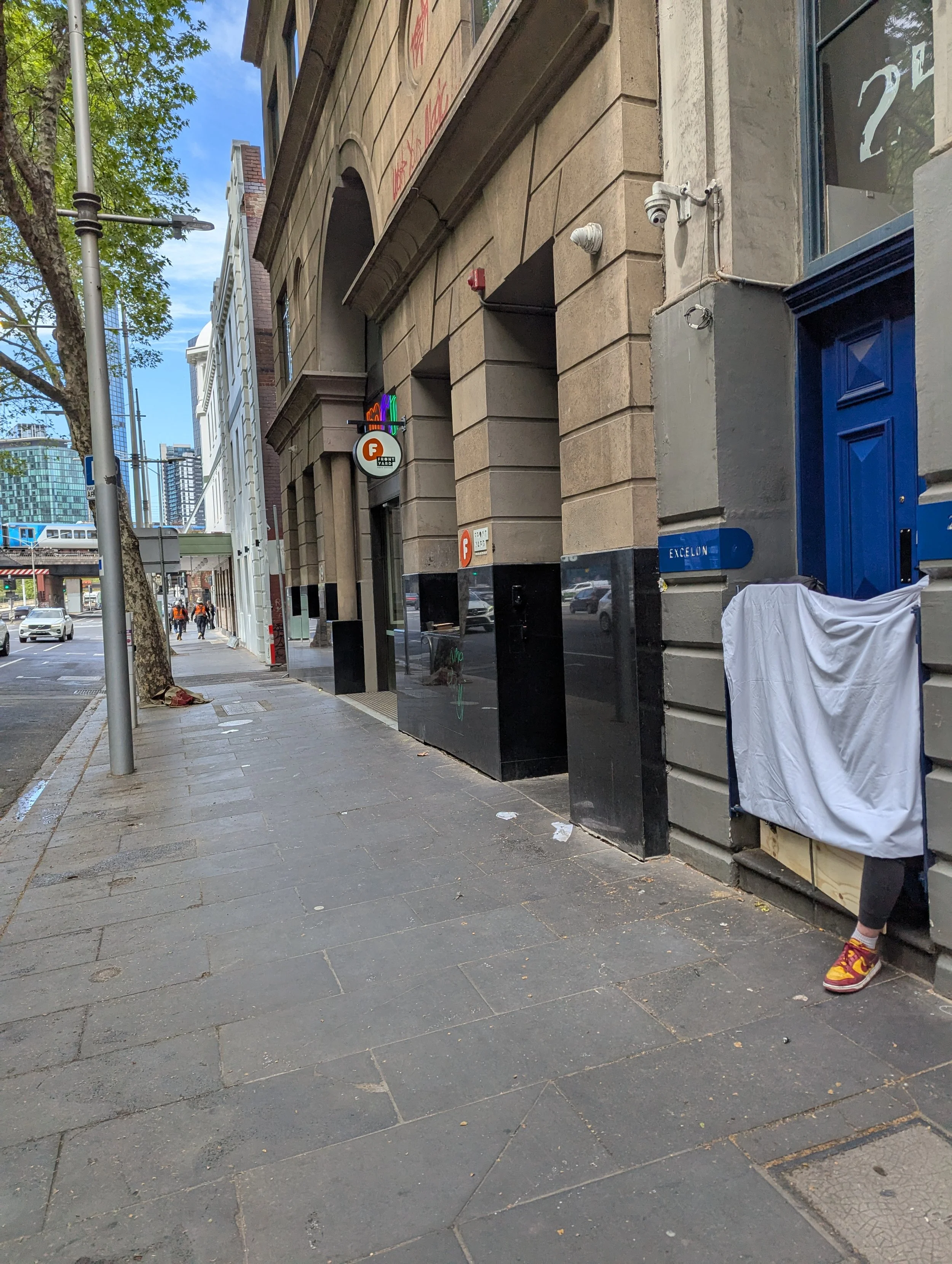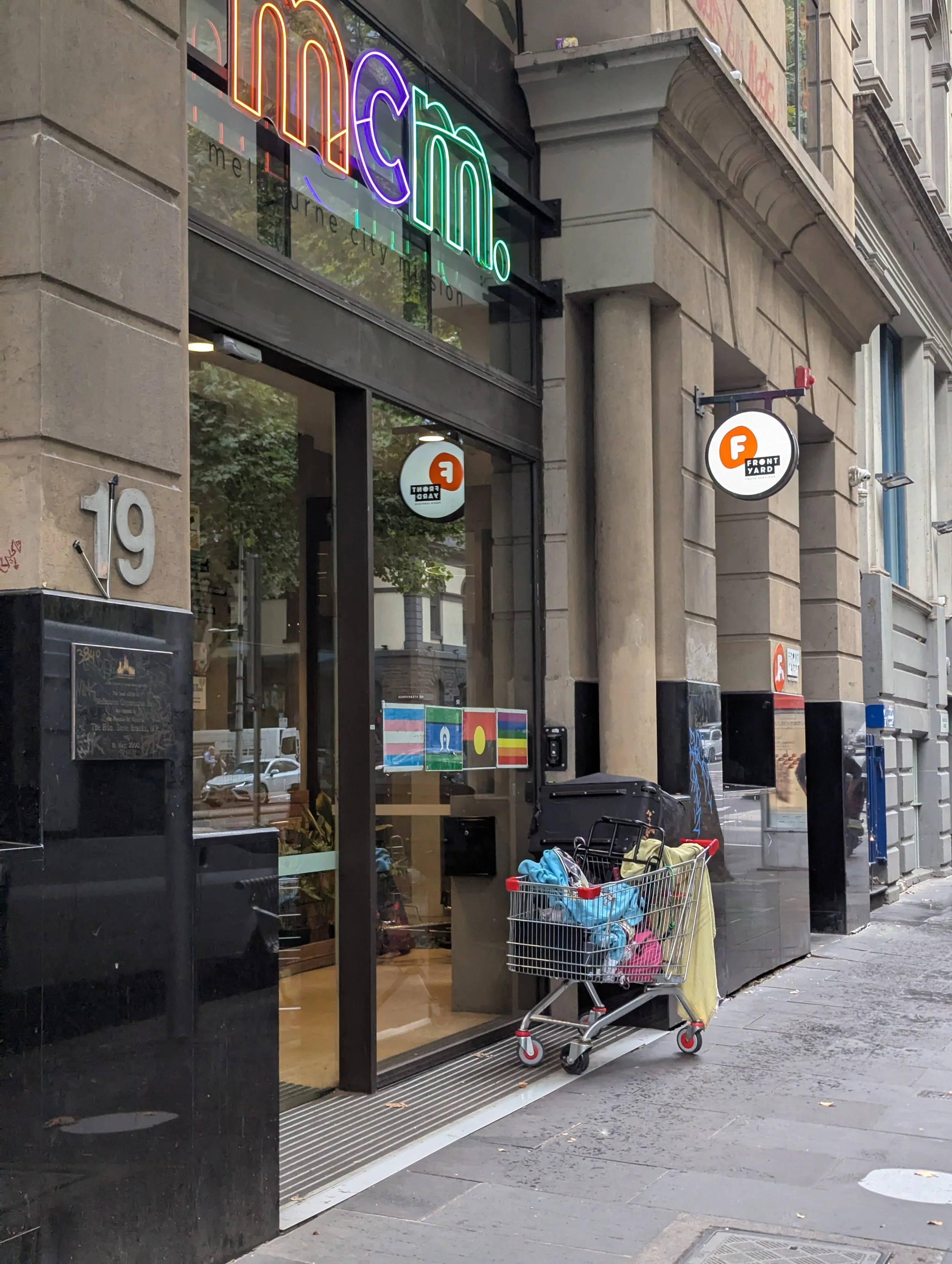 This website is an independent photographic documentation of the public environment in and around King Street (South end), Melbourne CBD. It is not affiliated with, endorsed by, or associated with Melbourne City Mission (MCM), Frontyard Youth Services, or any other organisations. Any incidental appearance of their premises, signage, staff, or clients occurs solely in the context of documenting the public streetscape and does not constitute commentary, representation, or implication regarding those organisations or the individuals depicted.