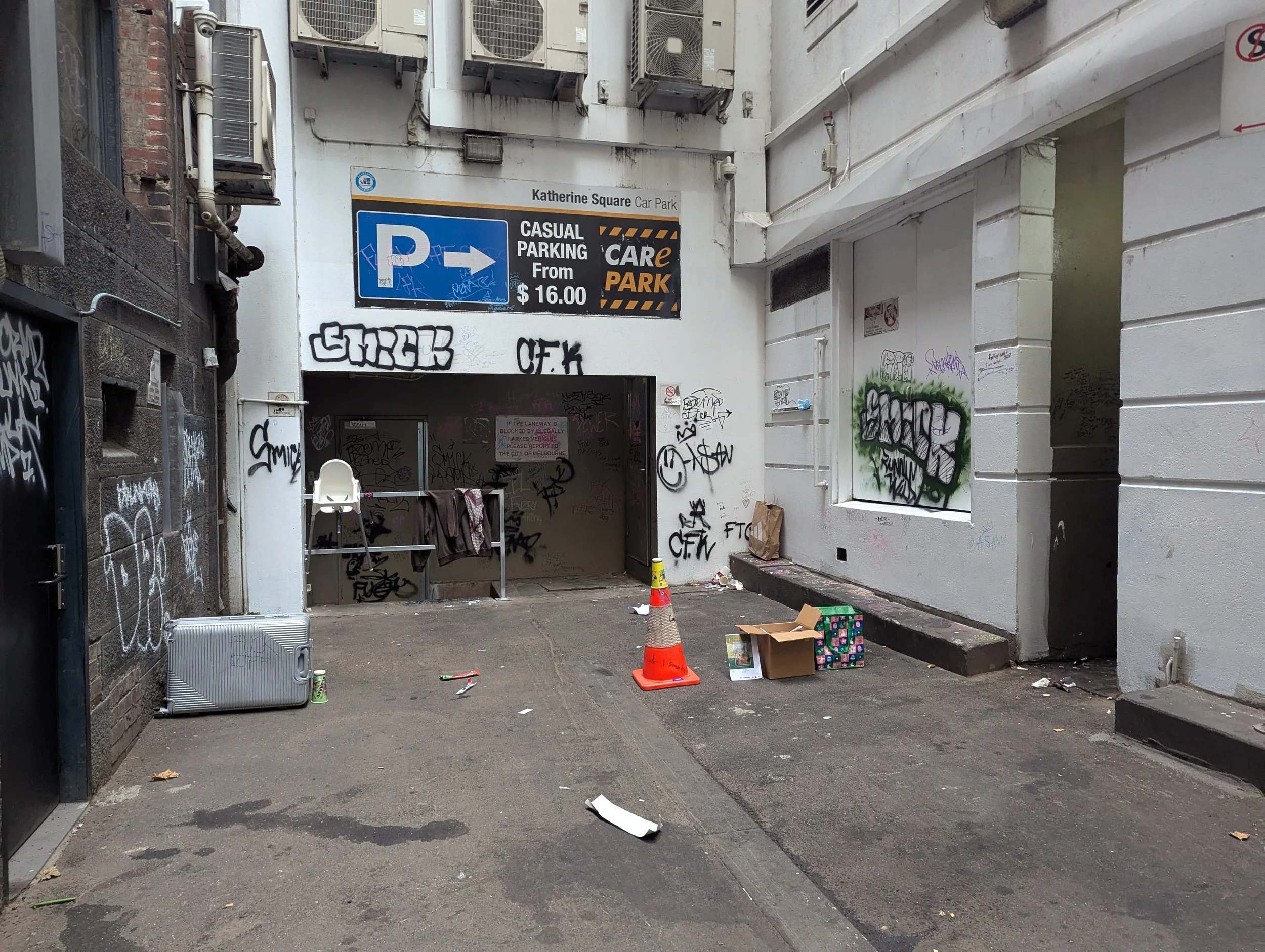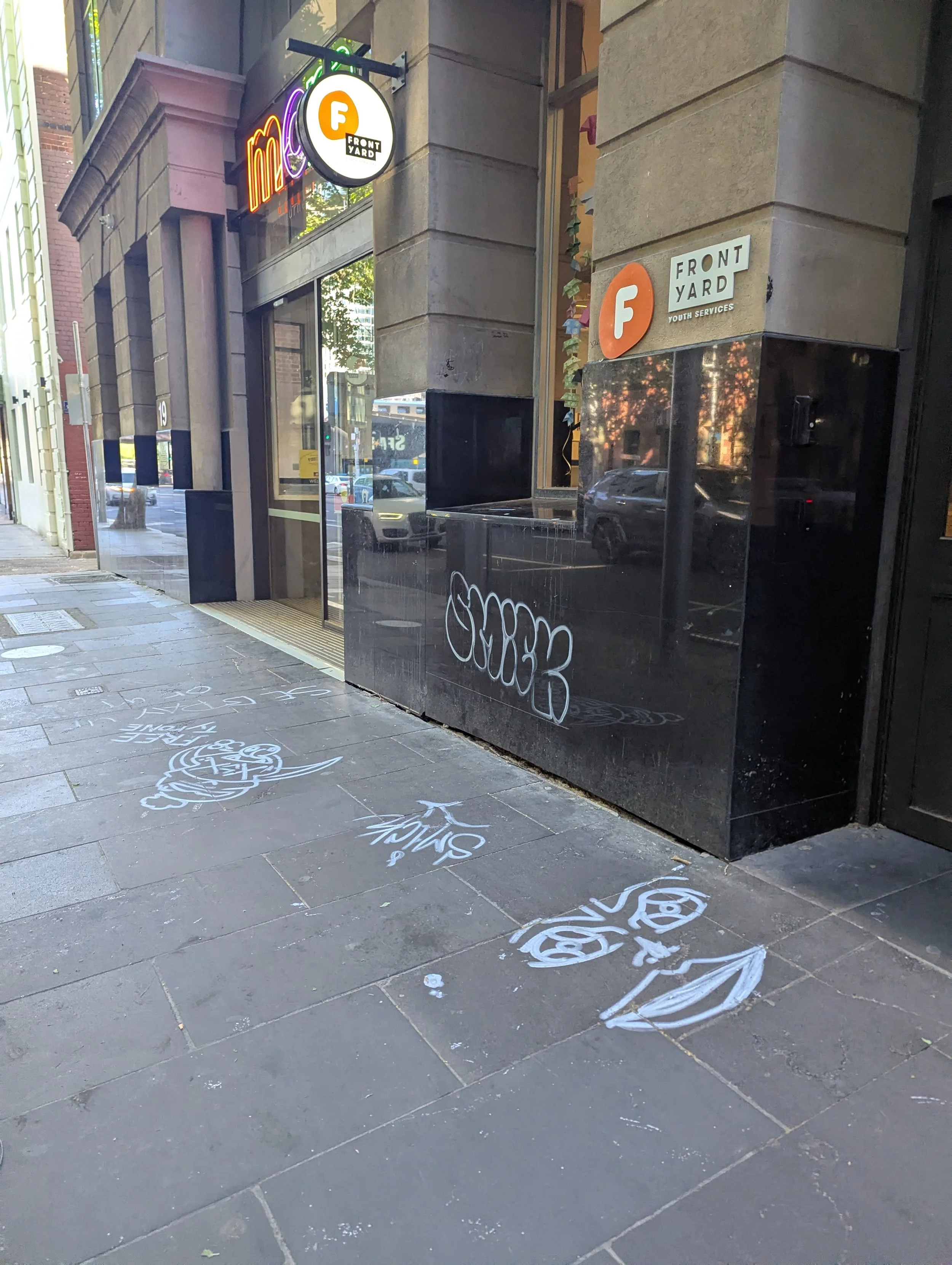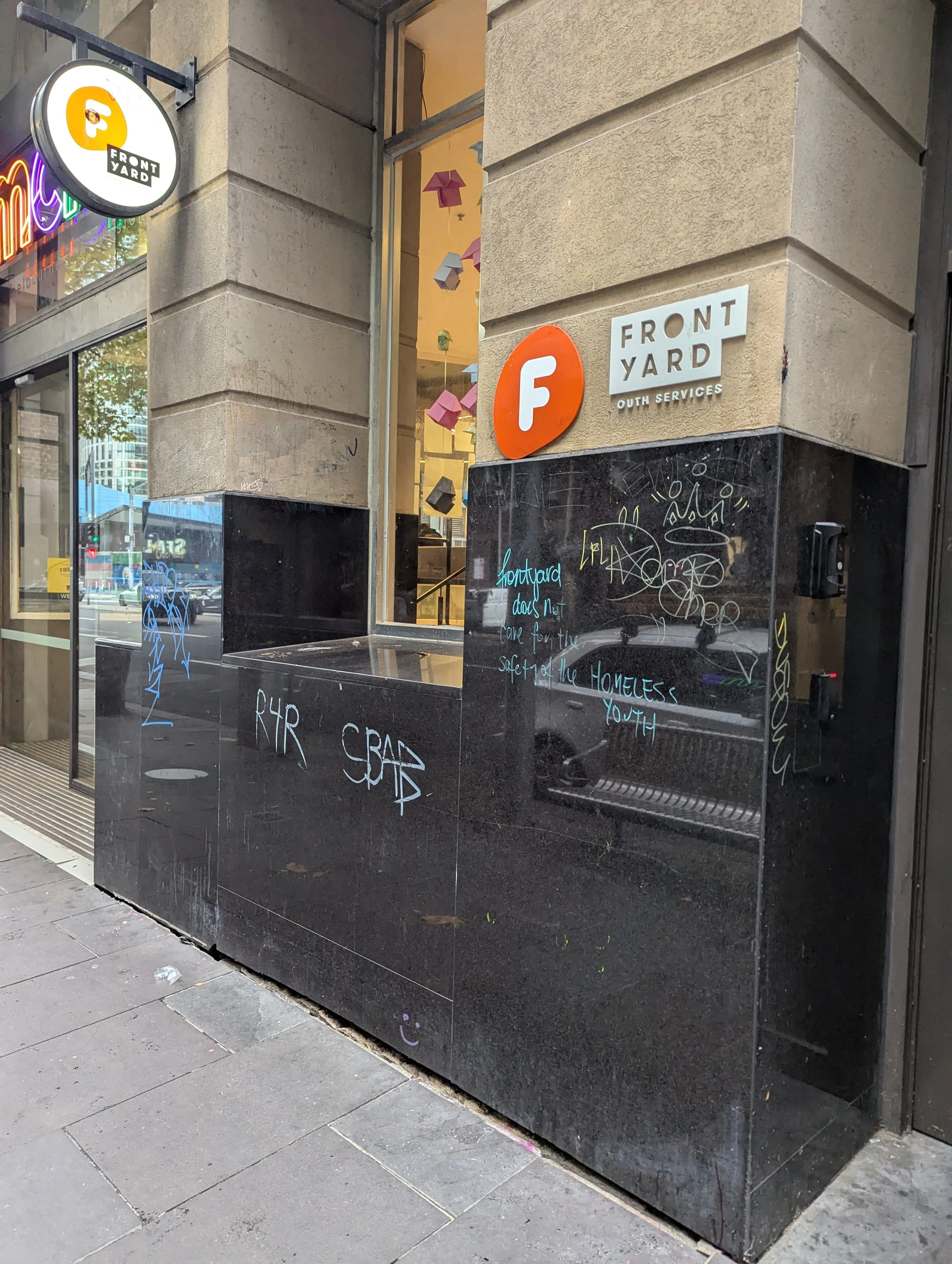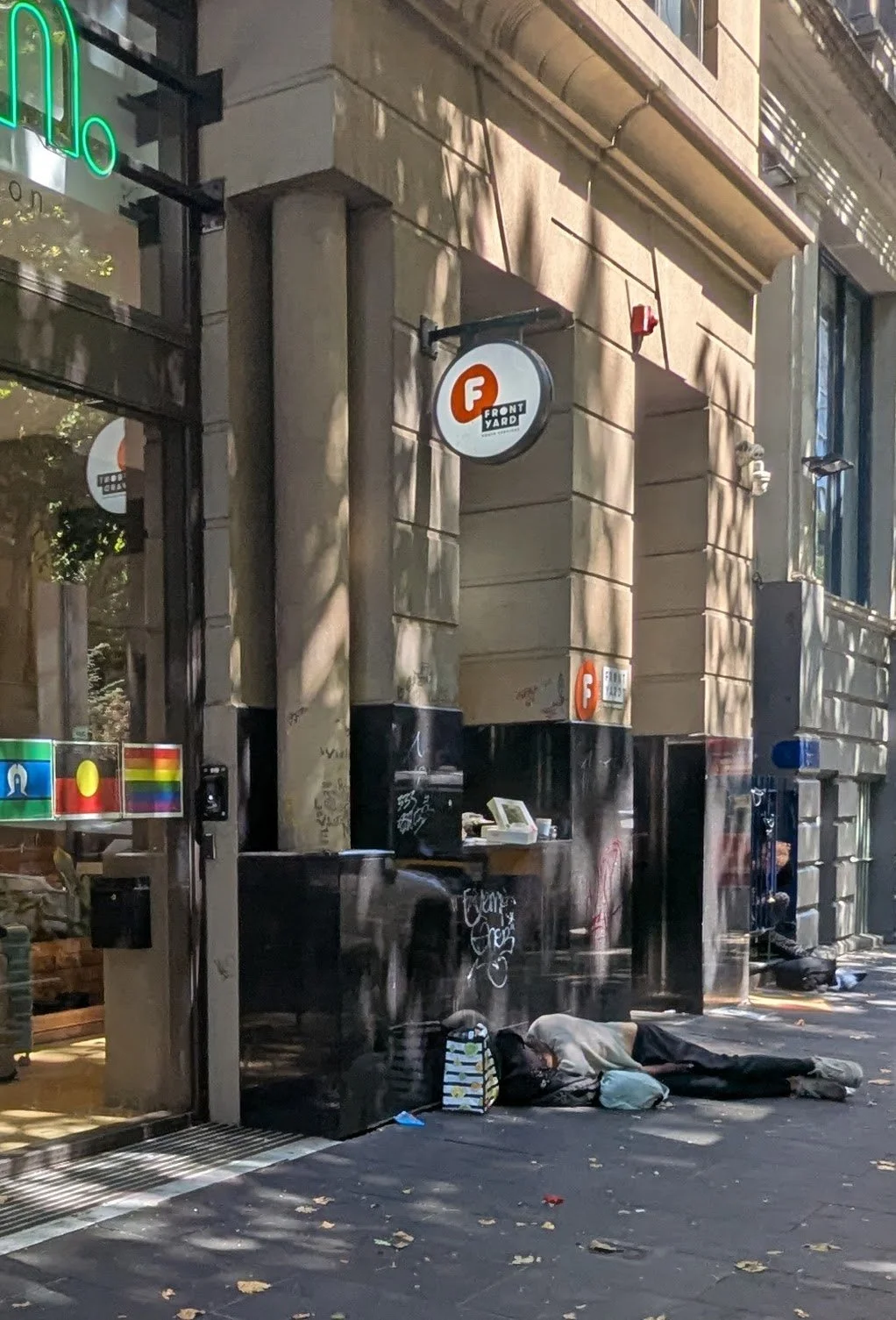 This website is an independent photographic documentation of the public environment in and around King Street (South end), Melbourne CBD. It is not affiliated with, endorsed by, or associated with Melbourne City Mission (MCM), Frontyard Youth Services, or any other organisations. Any incidental appearance of their premises, signage, staff, or clients occurs solely in the context of documenting the public streetscape and does not constitute commentary, representation, or implication regarding those organisations or the individuals depicted.
